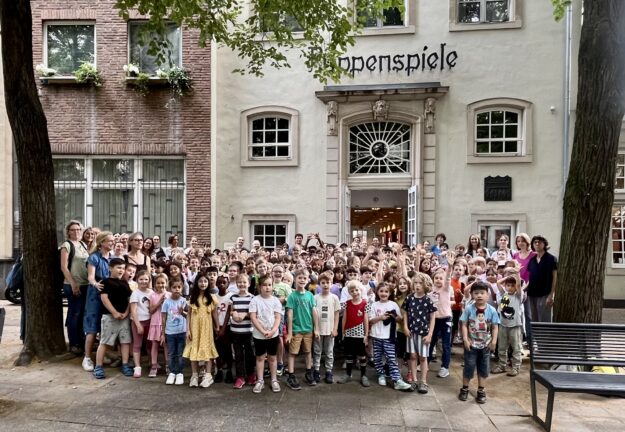 Mit der ganzen Schule ins Theater – und gemeinsam auf den Mond! Heute besuchten alle Klassen unserer Schule das Kölner Hänneschen-Theater und sahen sich das kölsche Stück En Fahrt nohm…