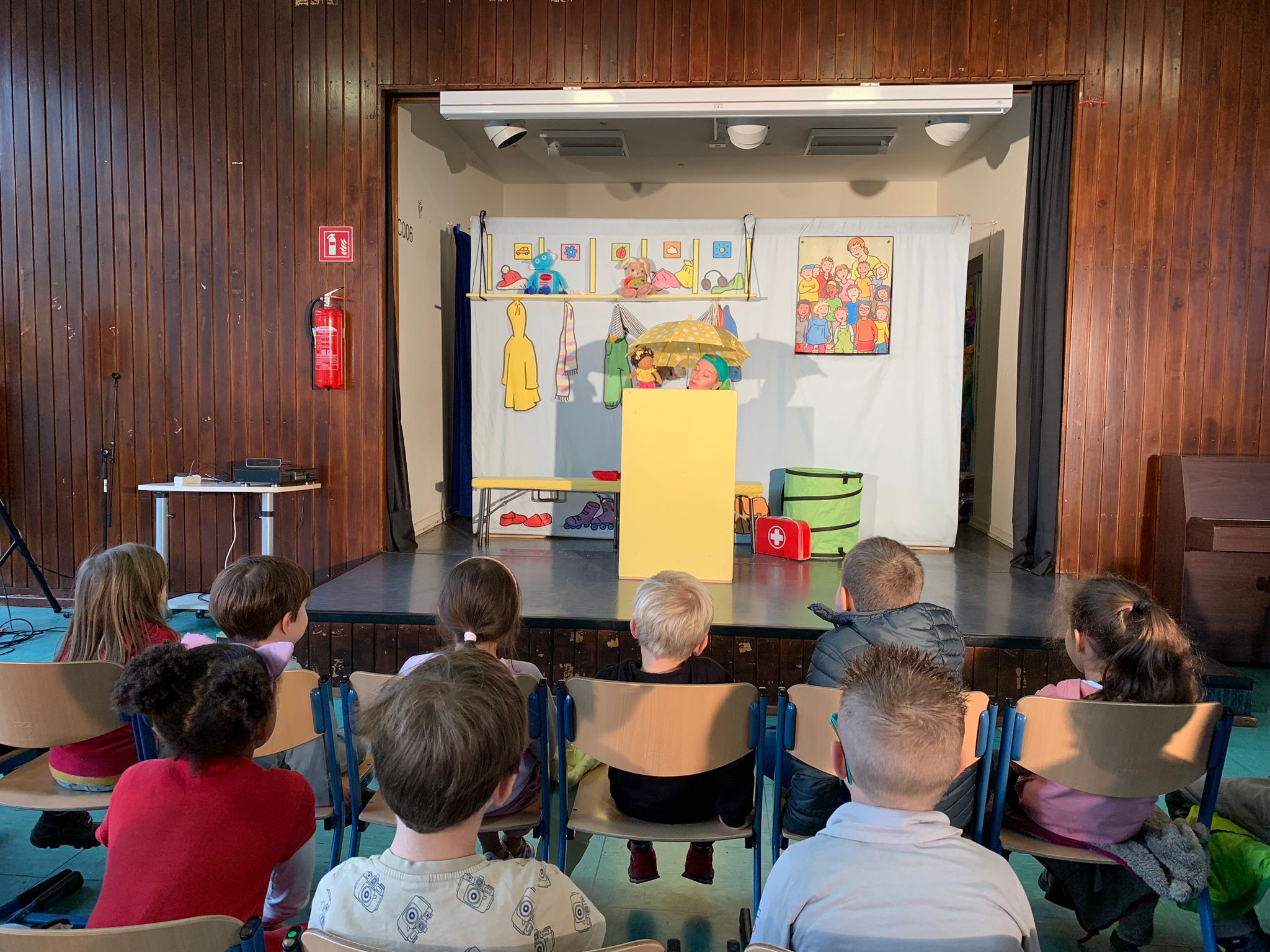 In einer liebevoll gestalteten Kulisse von Imke Schreiber erweckte das Puppenspiel die Kindergarderobe einer Kita zum Leben, wo Puppen und Stofftiere die Geschichte von Sina, Tim und anderen Kindern erzählten. Mit neugierigem Entdeckungsdrang spielen die Kinder verschiedene Rollenspiele wie „Mutter-Vater-Kind“ und „Doktor“. Dabei lernen sie, persönliche Grenzen zu respektieren und mutig „STOPP“ zu sagen, wenn ihnen etwas unangenehm ist.